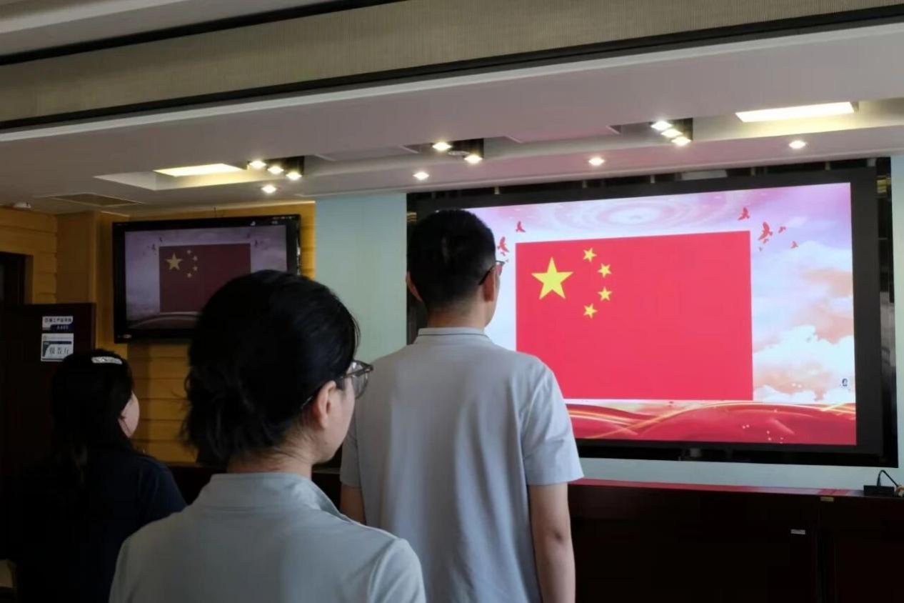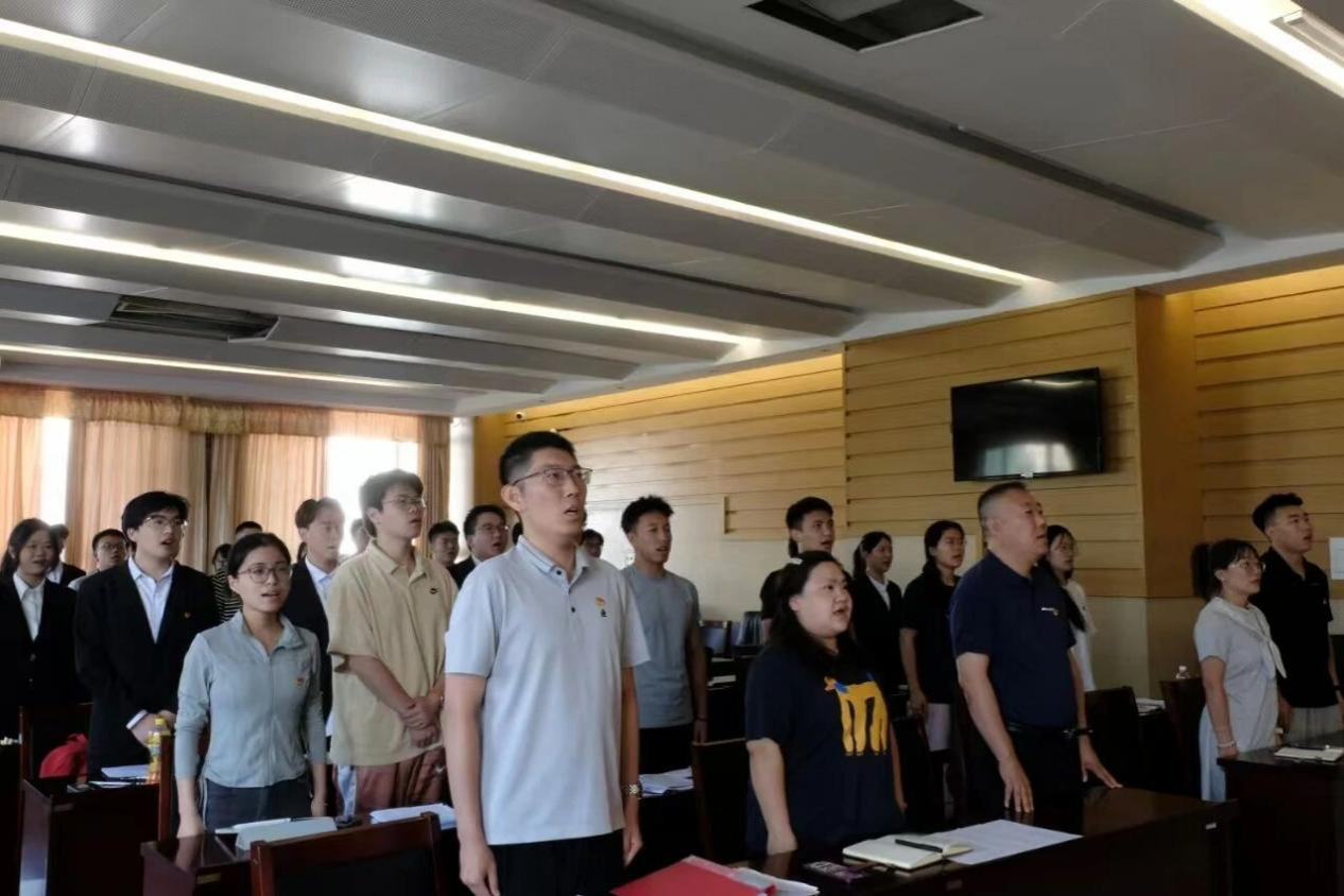 各位党员同志在韩聪一同志的带领下进行入党宣誓。全体党员面向党旗,举起右拳,庄严宣誓。