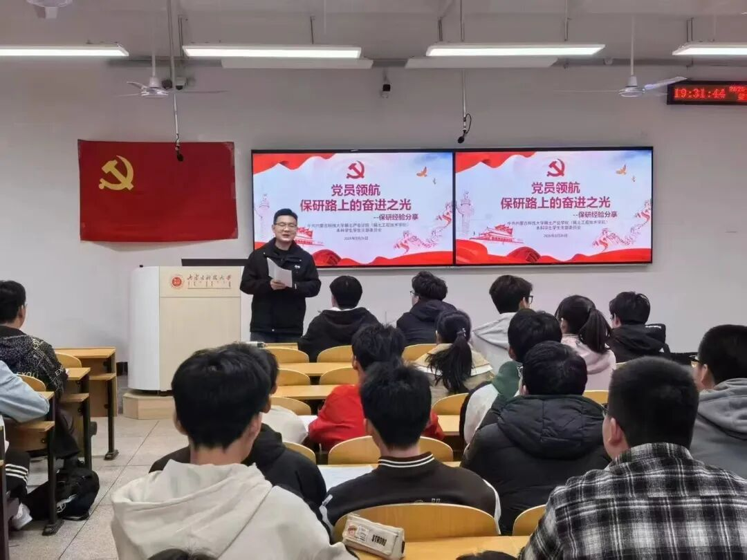 党员领航当“灯塔”,为保研路点亮奋进之光。教室里,分享者倾囊相授保研心得,从规划到备考层层拆解;聆听者眼神专注、笔尖不停,在“传帮带”的温暖氛围里,支部把学业奋进的力量传递给每一个逐梦的身影。