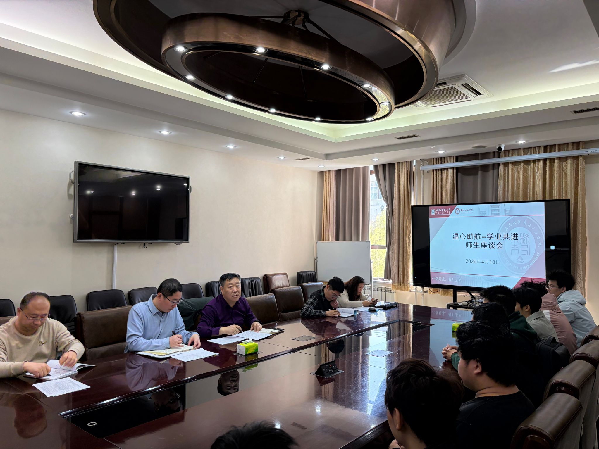 在a片jkA301会议室召开了题为“温心助航--学业共进”的学业预警学生帮扶座谈会。a片jk副书记胡显峰、a片jk教学副院长冯佃臣、教学办、学工办、相关班主任及学业预警学生参加座谈会。